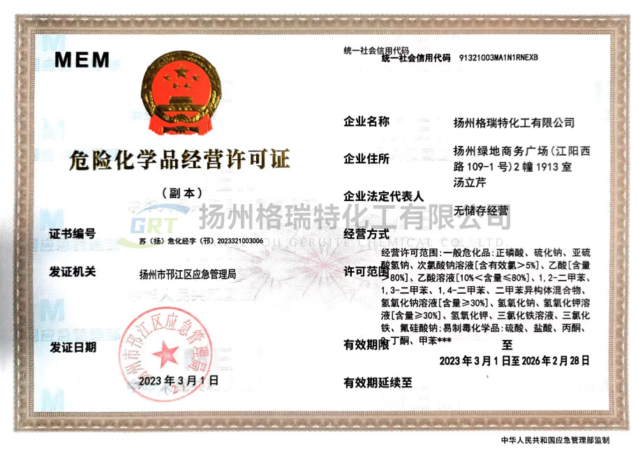 揚州格瑞特化工有限公司生產(chǎn)工廠坐落于江蘇省海安縣胡集工業(yè)園區(qū)和海安精細化工工業(yè)園。總公司成立于1999年,是集科、工、貿(mào)為一體的現(xiàn)代化生產(chǎn)型企業(yè)。專業(yè)致力于水處理劑、紡織印染助劑、化纖油劑等產(chǎn)品的科研、開發(fā)、生產(chǎn)和銷售。總公司占地面積40000m,建有現(xiàn)代化標準廠房,擁有先進的生產(chǎn)設備。年產(chǎn)各類水處理劑系列產(chǎn)品12000噸,紡織印染助劑5000噸,產(chǎn)品12個系列40多個品種。總公司注重技術(shù)投入,設立產(chǎn)品研發(fā)中心和環(huán)保運營中心,聘請了多位專家為公司技術(shù)顧問,并和多個重點院校建立了長期技術(shù)合作開發(fā)關(guān)系,是南通大學、江南大學、南京工業(yè)大學產(chǎn)學研基地。
